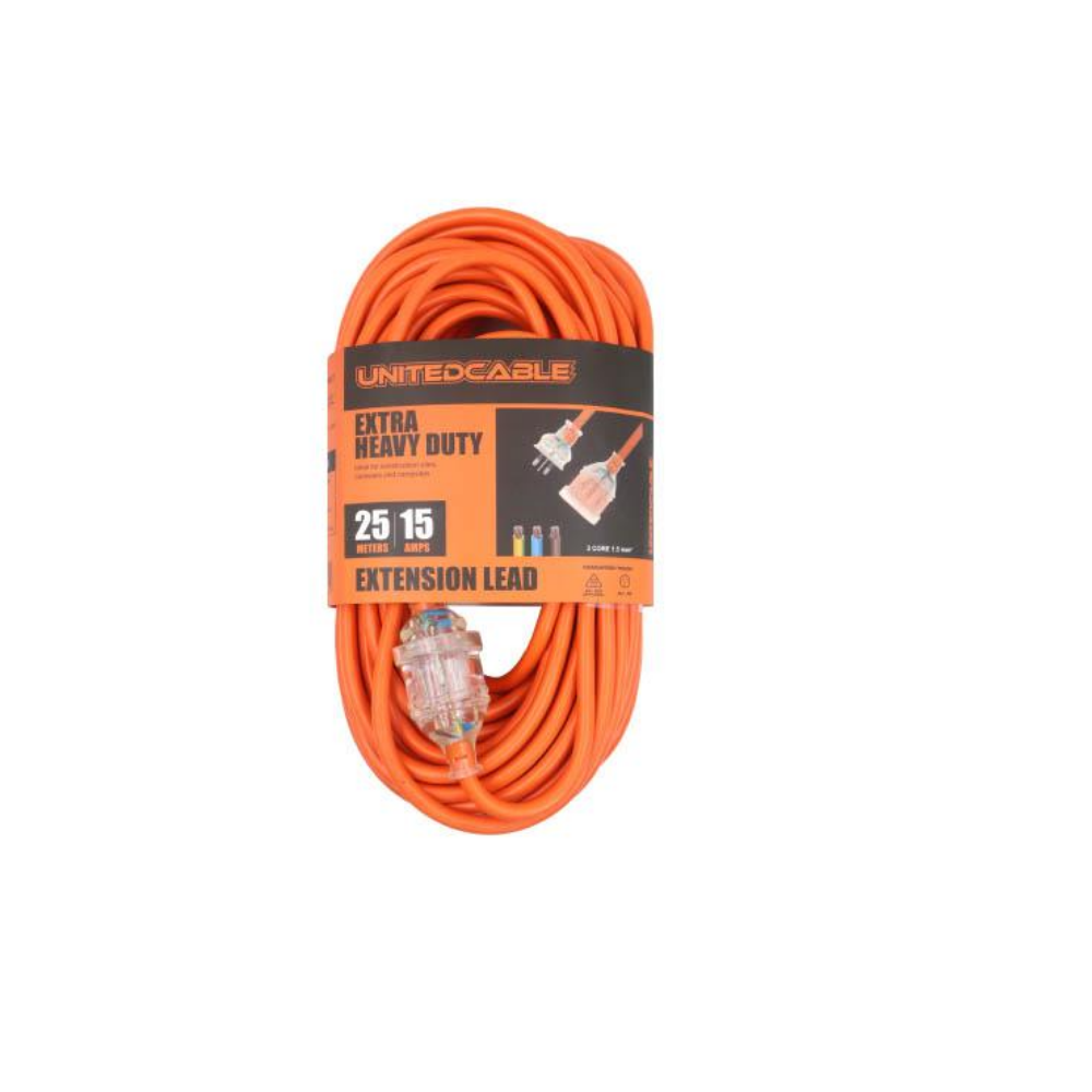 Extension Lead Heavy Duty Orange Description: 15A Plug & Outlet 240V 25M SAA
