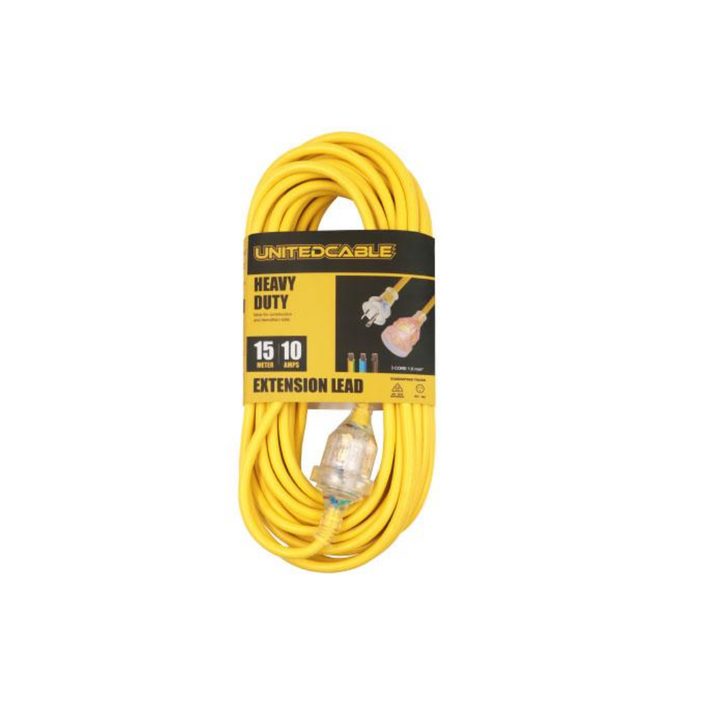 Extension Lead Heavy Duty Yellow Description: 10A Plug & Outlet 240V 15M SAA